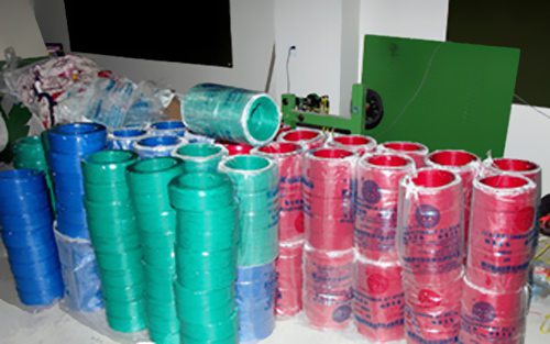 民房內有正在作業(yè)的機器,還有繁忙的兩女一男。當民警沖進時,他們傻眼了,當即中止了手頭作業(yè),呆呆地看著民警。民警現場緝獲制造冒充電纜線機器一臺、冒充的“昆明電纜廠”出產的制品和半制品電線700余卷和大量出產假電線的原材料,涉案價值15萬元。